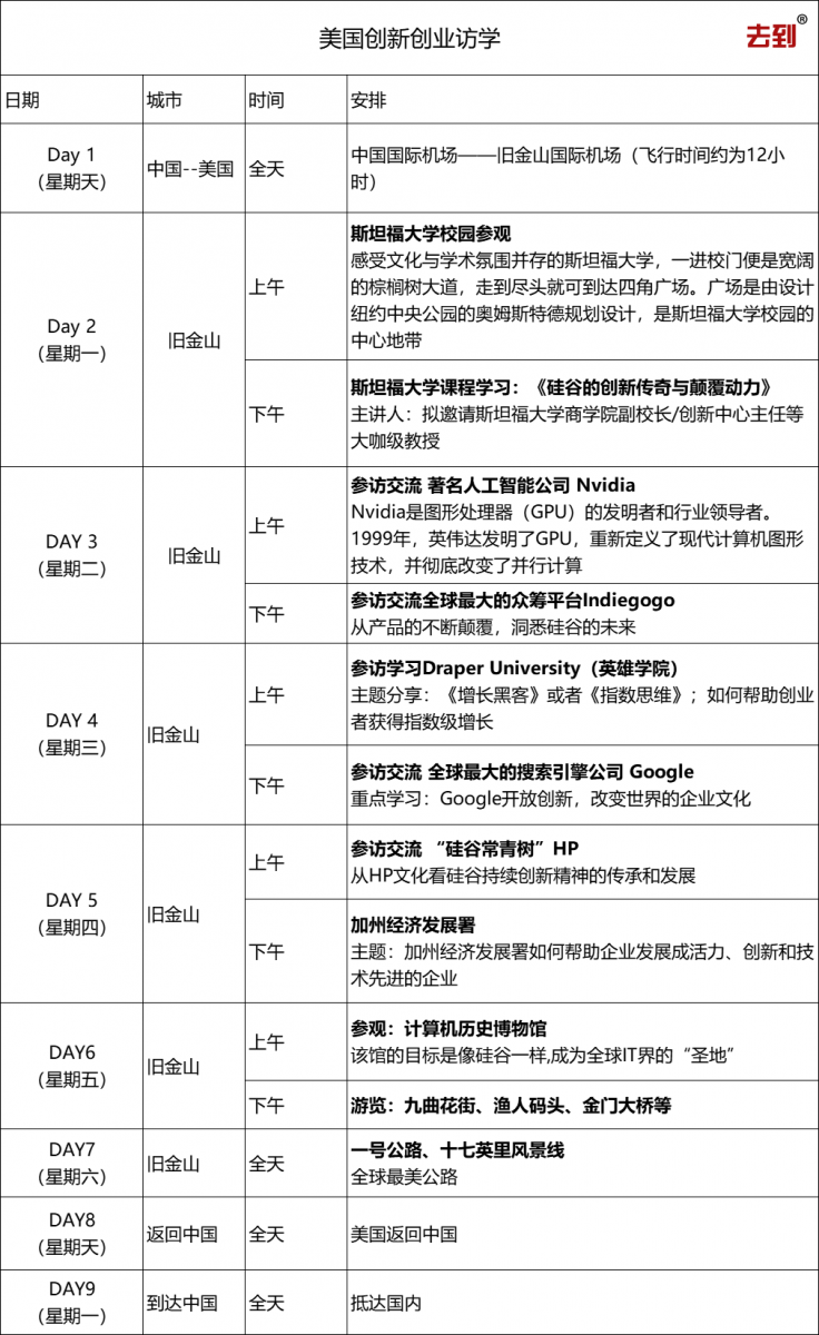 體驗(yàn)深度游學(xué) ,深度走訪舊金山、在與專家學(xué)者、企業(yè)高管的互動(dòng)中,獲取知識(shí)、輸出信息、建立信任在與美食美景的邂逅中,獲取靈感、放飛心情、成就成長(zhǎng)
