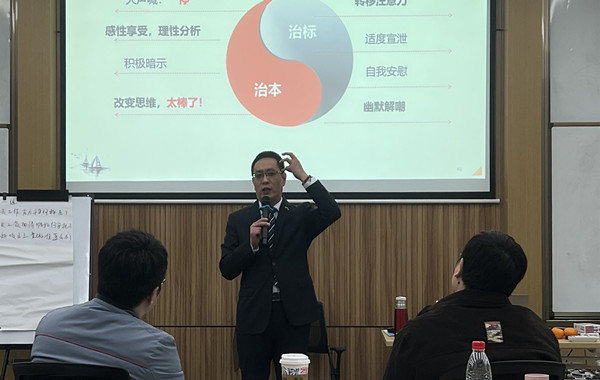 郭老師首先講解心理韌性4C模型:掌控、承諾、挑戰(zhàn)、自信。運(yùn)用心理韌性測試和尼克·胡哲的勵(lì)志視頻,讓大家了解心理韌性與績效、積極行為、健康和幸福感有很強(qiáng)的正相關(guān),并分享了提高心理韌性的7個(gè)法寶,學(xué)員們積極互動(dòng)、踴躍發(fā)言。